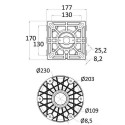 - Base : aluminium anodisé Ø 228 mm