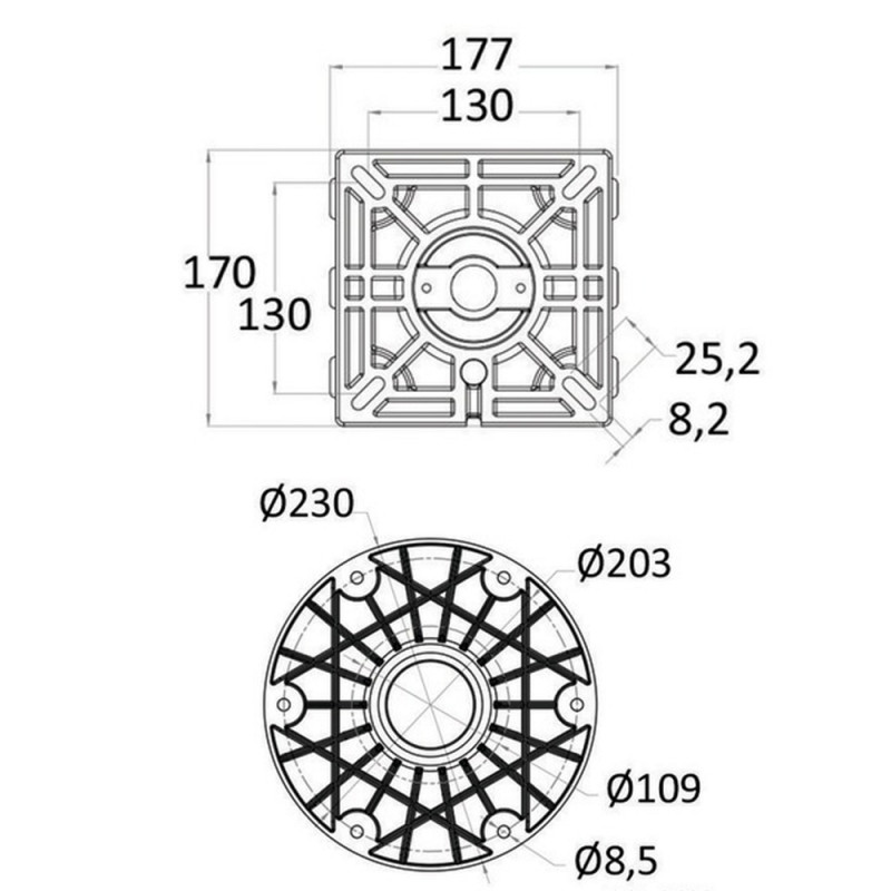 La tête de fixation en nylon renforcé fibre de verre avec perçage universel permet d’installer la majorité des sièges nautiques standard. Le support est démontable de sa base en aluminium Ø 228 mm pour faciliter l’installation ou l’entretien.