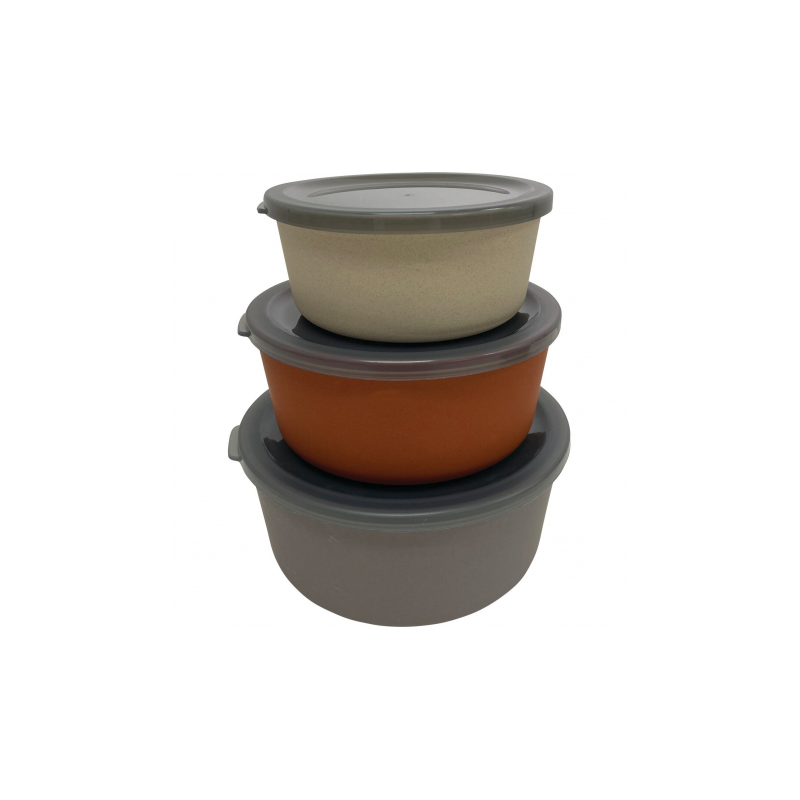Lot de 3 boîtes alimentaires en fibre de bambou équipées d'un couvercle en silicone gris.