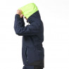 La veste est équipée d'une capuche haute visibilité (jeune fluo), celle-ci est réglable et repliable dans le col montant protecteur.
