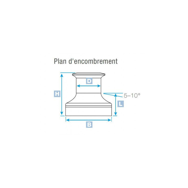 La bague de guidage en inox moulé recouvre intégralement le haut du winch, afin d’éviter toute possibilité de coincer le cordage dans la mâchoire. La position de cette bague est réglable de manière à orienter la sortie du cordage vers le cockpit.